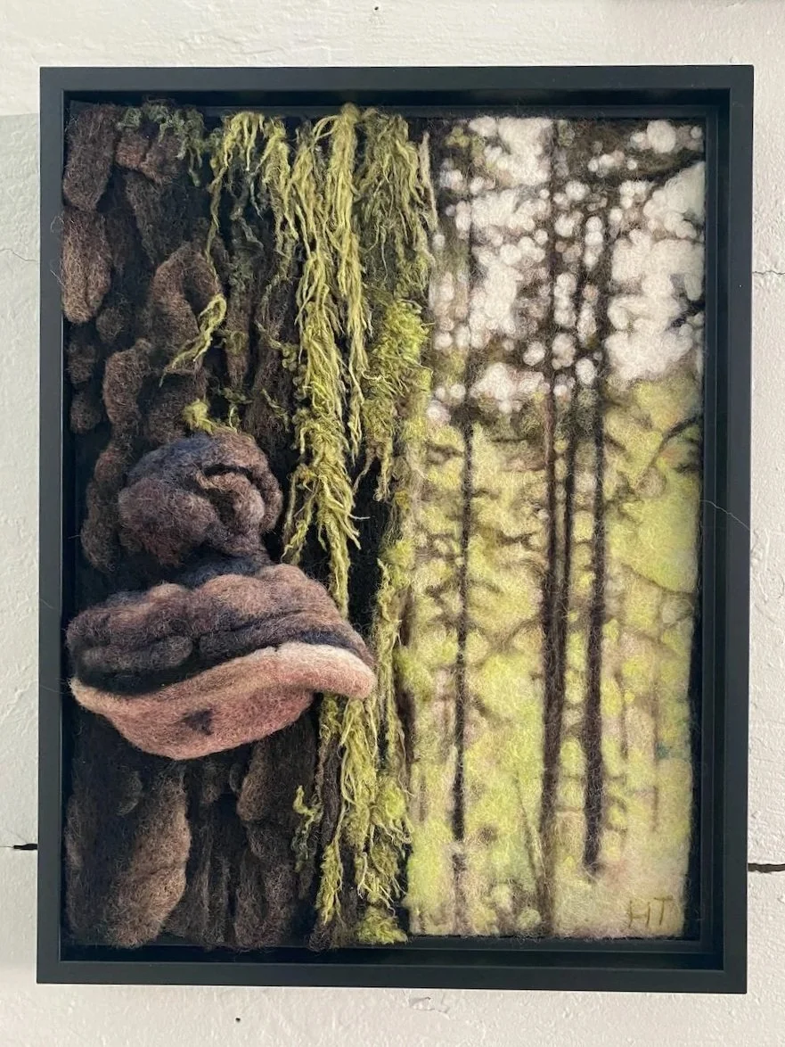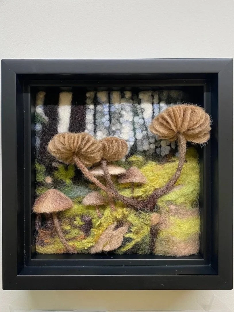 In 2016 I started experimenting with needle felting as a way to create more depth in my work. I found wool to be an excellent medium for creating photo-realistic work in colour but with a more sculptural quality. I have learned a little more with each piece I’ve made, experimenting with natural dye (including dyeing wool with mushrooms!) and wet felting.